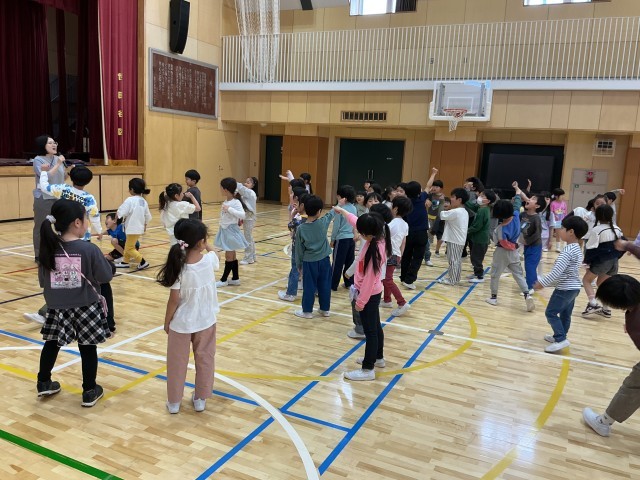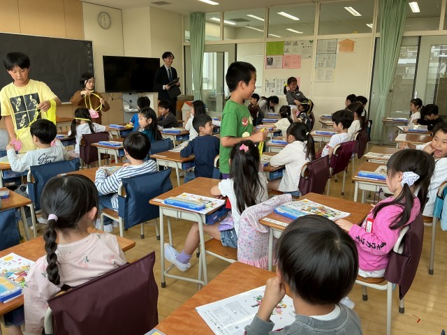 練習後には、2クラス合同で「もうじゅうがりに行こうよ」ゲームを