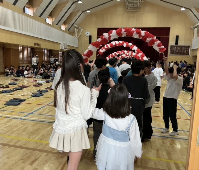 今日は1年生を迎える会があり、全校児童が、1年生の入学を出し物やクイズでお祝いするあたたかい会となりました。また、6年生は一緒に手を繋いで入場をしてくれました。子どもたちに感想を聞いてみると、「楽しかった!」「若小クイズおもしろかった!」「6年生の演奏すごかった!」などこれからの学校生活に期待を膨らませながら会を楽しみました。