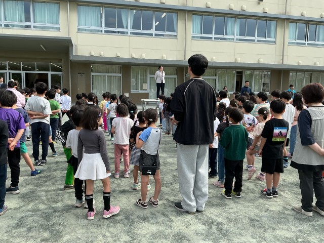 また、今日は朝の時間に全校朝会がありました。朝の準備にも慣れ、スムーズに移動することができてきています。朝会終了後は6年生の鼓笛演奏とともに、元気に退場しています。