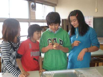 6年生が家庭科の時間にジャガイモの皮をむきました。