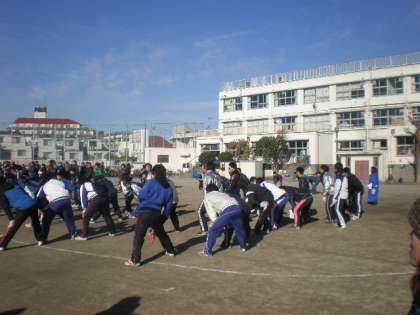 校長先生も一緒にウォーミングアップをしていました。