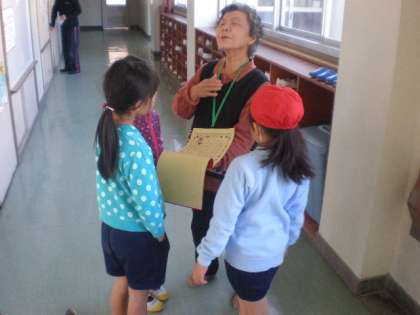 廊下では2年生がお世話になった地域の皆さんにお礼のお手紙を渡していました。