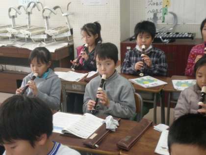 4年生は音楽の時間に、元気に歌とリコーダーの練習をしました。