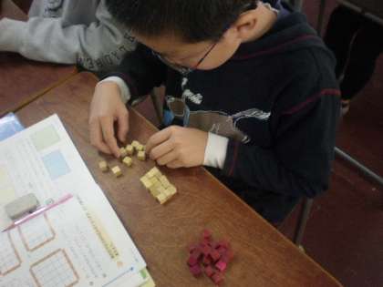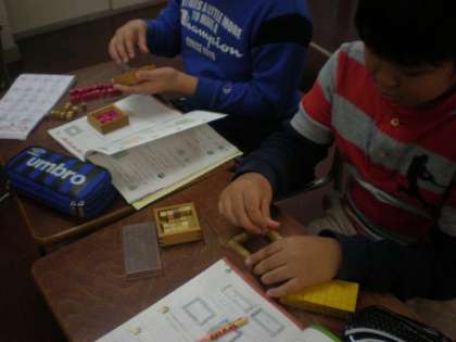 4年生の算数で、タイルを敷き詰める問題に取り組みました。