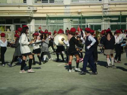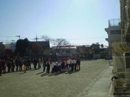 演奏後、6年生は校庭に残って集合写真を撮っていました。