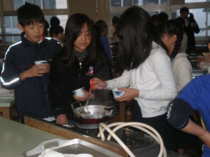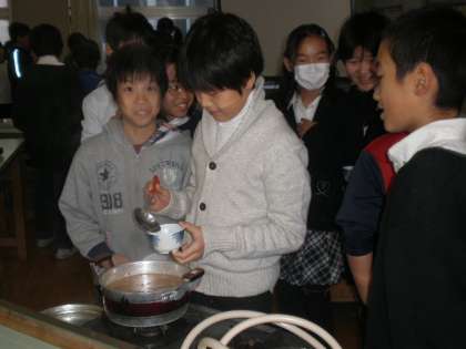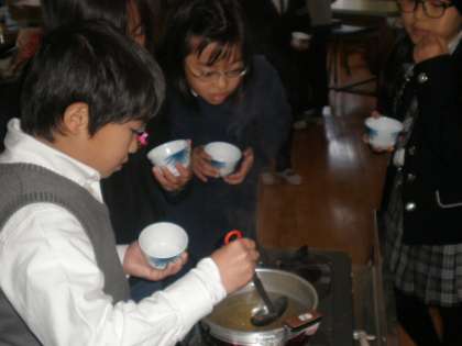 お味噌汁の実を決めた後は、お味噌汁と出汁の関係についての学習をしました。