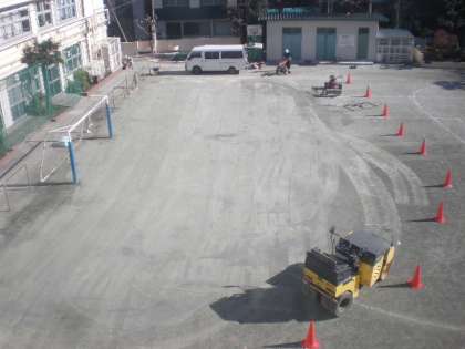 今朝から校庭に作業車が入って校庭の整備が行われました。
