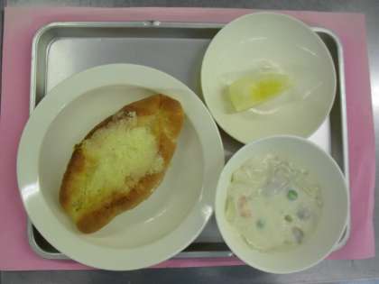 献立名 ガーリックトースト 牛乳 クリームシチュー りんご