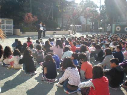 今日の2時間目に避難訓練があり、火災のため放送機器が使用できなという想定でした。