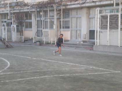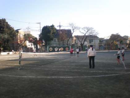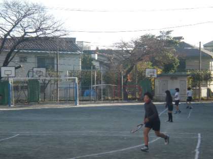 校庭ではラケットクラブの子達が校庭に描いたテニスコートで、