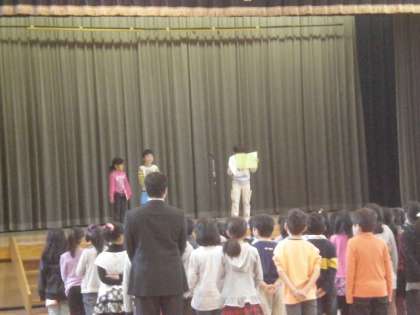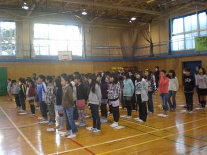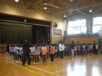 とても寒い朝でしたが、全校児童が集まり、