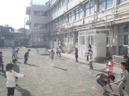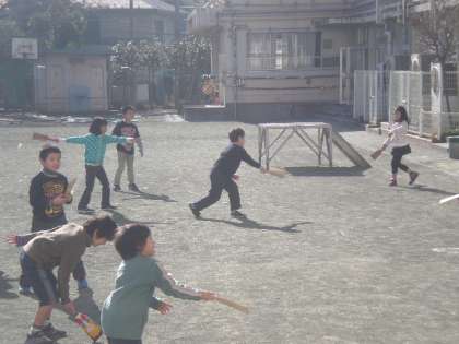 意外に難しい羽根突きで、気持ちよく汗を流していました。
