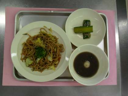 献立名 ソース焼きそば 牛乳 きゅうりの中華味 白玉しるこ
