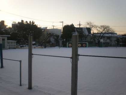 昨日の雪のため、若小の校庭はすっかり銀世界になりました。