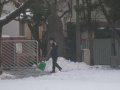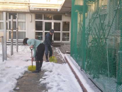 いつも子供たちが使っている正門や犬走りを、先生と主事さんで雪かきをしました。