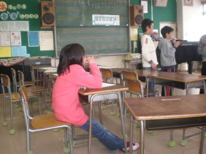 お休み時間に音楽室で楽器を決めるためにセレクションが始まりました。