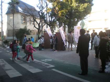 今回の挨拶運動にも、保護者の皆様のご参加をいただくことができました。