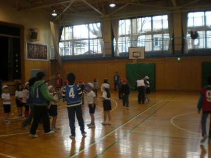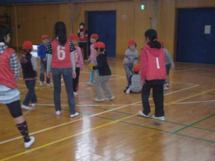 いつも一生懸命の1年生が体育館のコート内を走り回りました。