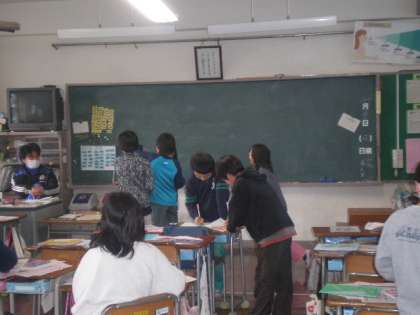 教室のみならず、家庭科室、主事室、体育館に図書室と、