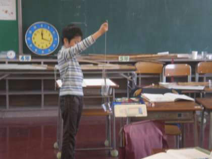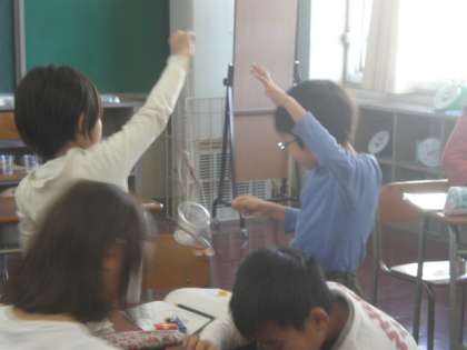 傾きを見ながら重さを同じにしたりと、天秤の扱いにだいぶ慣れた3年生。