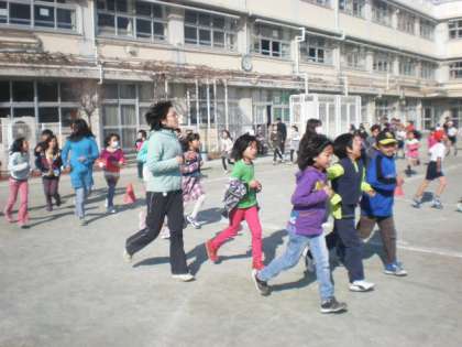 持久走の音楽が鳴ると、自分たちで出発地点に並んで、準備運動をするまでになりました。
