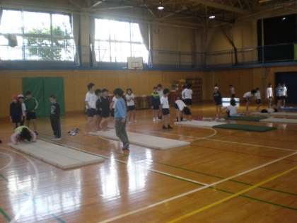 前転、後転、開脚前転、開脚後転、閉脚前転、閉脚後転と、