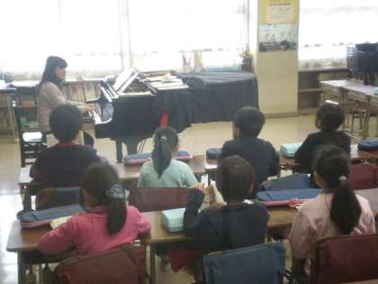 2年1組の子たちが音楽の時間に「赤い屋根の家」を歌いました。