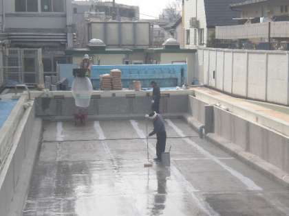 プールの工事が順調に進み、今日はプールに新しいセメントが塗られました。