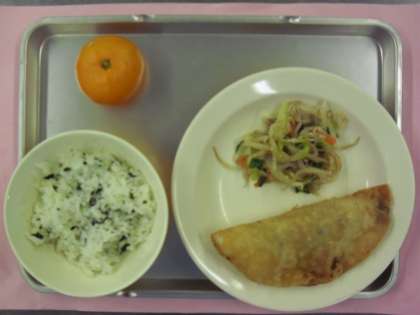 献立名 わかめごはん 牛乳 ジャンボ餃子 塩ナムル みかん