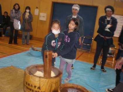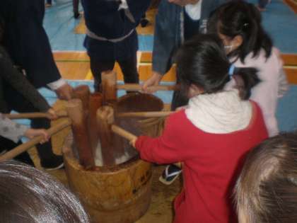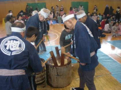 1年生から6年生まで、全員がお餅つきをさせていただきました。
