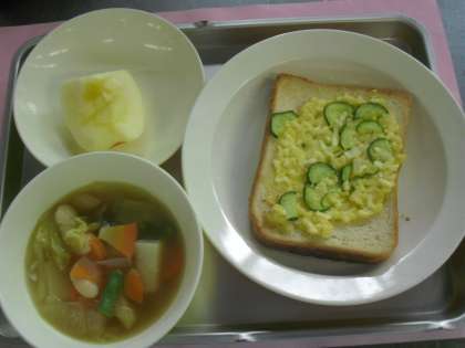 献立名 たまごトースト 牛乳 白いんげんの田舎風スープ りんご