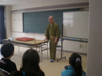 毎年、若小4年生に楽しい落語を聴かせて下さっている三遊亭圓窓師匠が、