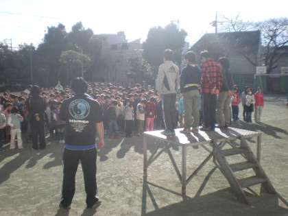 最後に1年間、がんばって体育朝会を進めてくれた運動委員会の子たちに拍手が送られました。