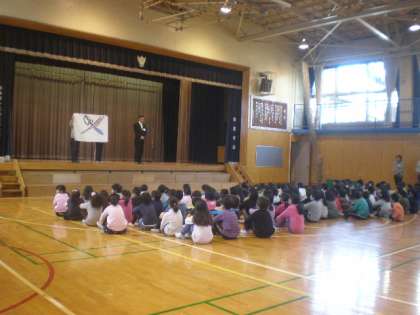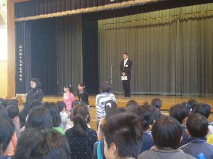 寒い中でしたが、みんな静かにお行儀よく朝会に参加できました。