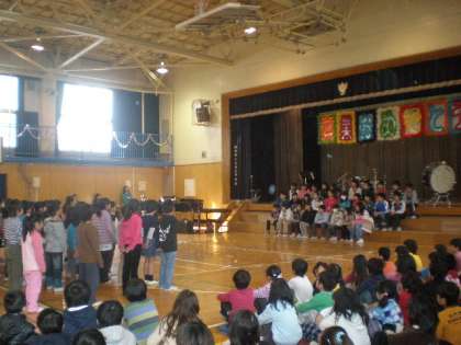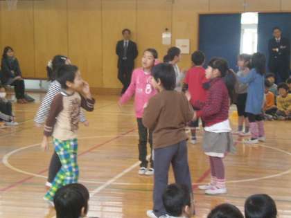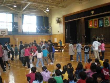 6年生も輪の中に入ってもらって一緒に歌い、踊りました。