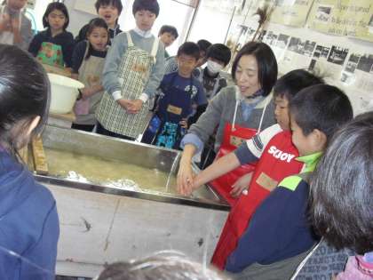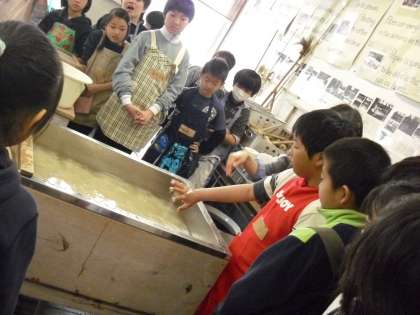 4年生が社会科の学習の一環で、紙すき体験をしました。