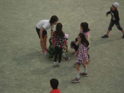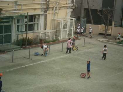 転んだ子がいると、上級生たちが駆けつけるのも若小らしい光景です。