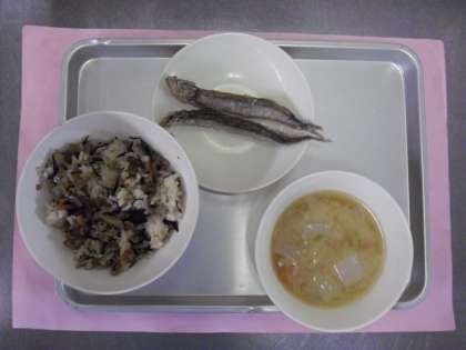 献立名 ひじきごはん 牛乳 呉汁 ししゃものからあげ