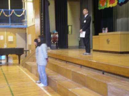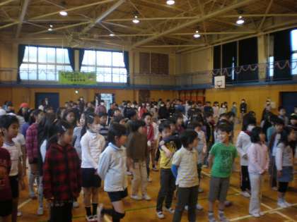 代表の6年生の言葉に続いて、みんなであいさつをしました。