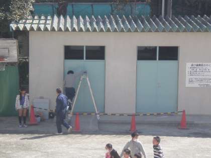 完成の日も間近なようで、登校している子たちも工事の様子を注視しているようです。