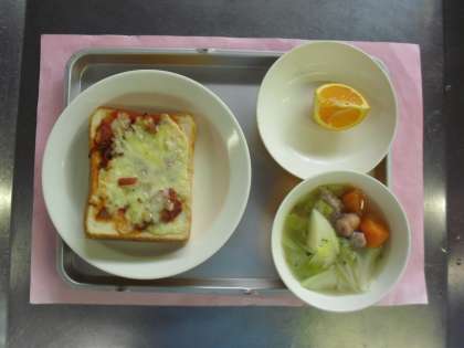 献立名 ピザトースト 牛乳 ポトフ 清見オレンジ