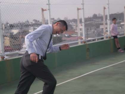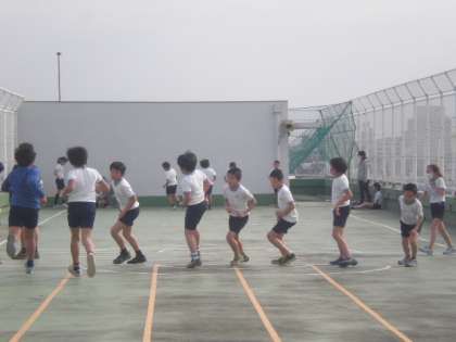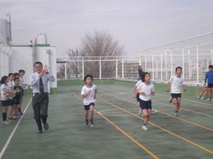 なぜか校長先生もネクタイ着用のまま、シャトルランに参加していました。