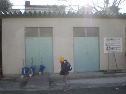 扉の改修工事が行われておりました体育倉庫ですが、