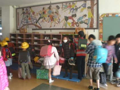 複雑な若小の校舎ですが、自分で教室へ行けています。