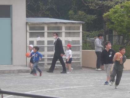 4月にやってきたばかりの校長先生に、子供たちも興味津々のようです。