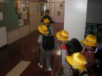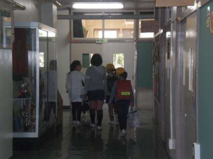 1年生の子たちは、6年生といつも一緒に廊下を歩いていますね。