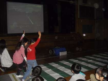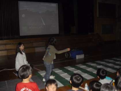 体育館で映画を観たり、体育館に設置された横断歩道と信号で練習をしたり。