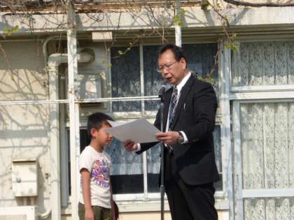 賞状を読む校長先生の顔も嬉しそうです。