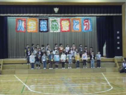 1年生は初めてみんなの前で歌を歌いました。少し緊張している姿がとてもかわいらしく見えました。