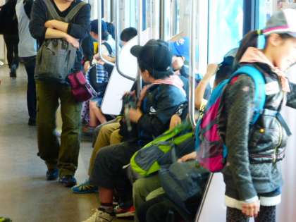 行きの電車の中からとてもお行儀のよかった若小5、6年生。